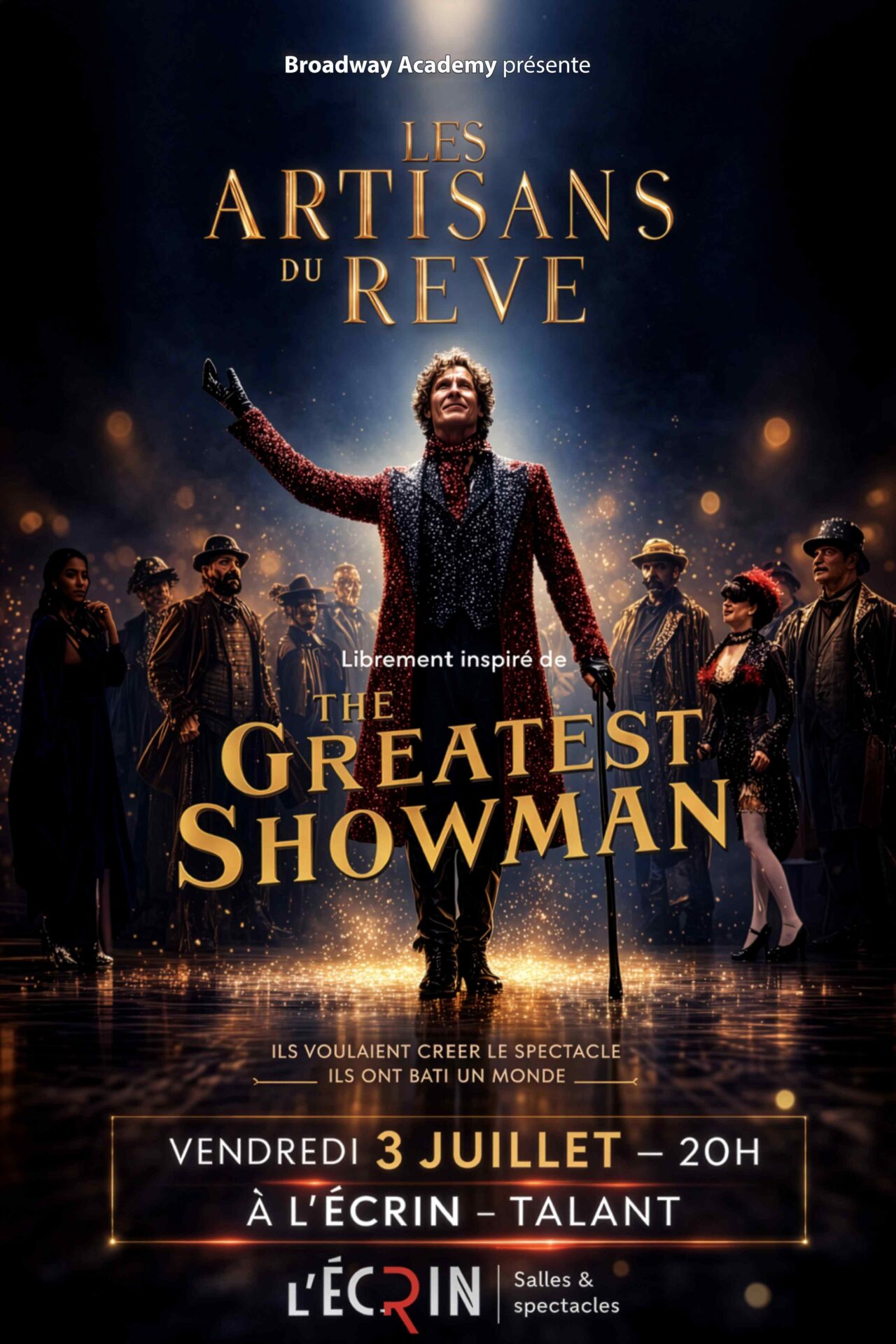 ✨ LES ARTISANS DU RÊVE ✨ Un spectacle musical spectaculaire, humain et inspirant. Porté par les voix de Broadway Academy, il célèbre la création, la beauté de la différence et la magie du spectacle vivant. Sur scène, une troupe d’artistes passionnés mêle musique, danse et émotions pour donner vie à un univers vibrant. Un moment de partage qui parle à l’enfant que nous avons été… et à l’adulte que nous sommes devenus. Une étincelle qui se transmet.